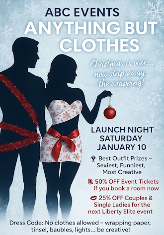 Step into the new year with imagination, flair, and a touch of cheeky creativity at Liberty Elite’s Anything But Clothes themed night! This unique event invites guests to ditch traditional outfits and arrive wearing absolutely anything—as long as it’s not normal clothing.