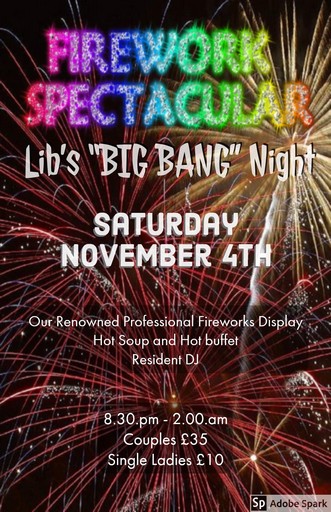 Once again it’s BIG BANG night at Libs, and once again we are proud to present the evening and firework display that we are now renowned for.
