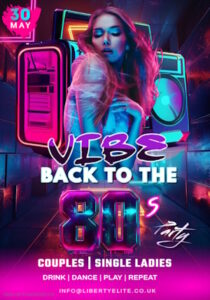 Step back into a decade of neon lights, electric chemistry, and unapologetic desire. VIBE is an exclusive 80’s-inspired party designed for those who crave connection, confidence, and unforgettable energy. Join us on Friday, May 30th at the luxurious Liberty Elite, where the night pulses with retro beats, bold fashion, and irresistible temptation. From synth-heavy rhythms to bodies moving under neon glow, this is a night where boundaries blur and the vibe takes over. Expect: • Iconic 80’s atmosphere & music…