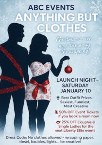 Anything But Clothes – Creative Theme Night at Liberty Elite Step into the new year with imagination, flair, and a touch of cheeky creativity at Liberty Elite’s Anything But Clothes themed night! This unique event invites guests to ditch traditional outfits and arrive wearing absolutely anything—as long as it’s not normal clothing. Whether you craft an outfit from Christmas tinsel before packing away the decorations, wrap yourself in ribbons, repurpose household items, or engineer a masterpiece out of unexpected materials,…